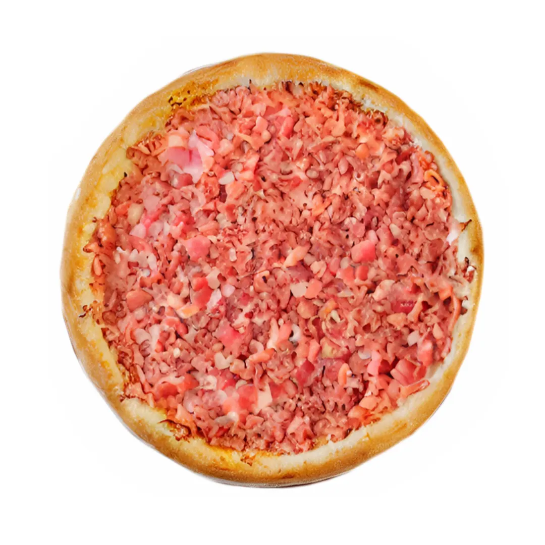 Pizza Grande - Molho de tomate, muçarela, presunto, pedaços de bacon e orégano